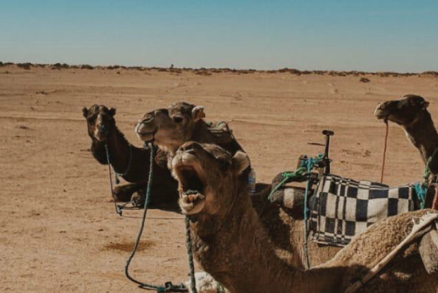 - Evening: Upon arrival at the shrine of Sidi Naji, a sacred place for the nomads, we will rest for the night. Dinner will be prepared around the campfire, and there will be a cultural exchange with the camel drivers and cook. The sunset over the desert is a moment not to be missed. We’ll either sleep in tents or under the stars.