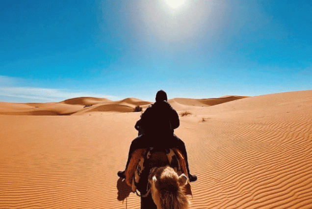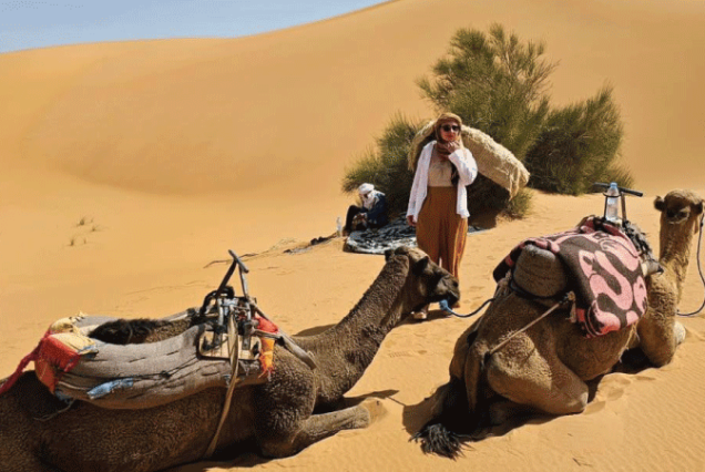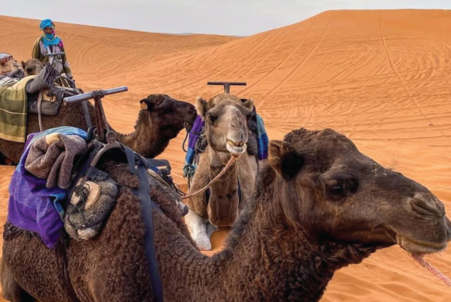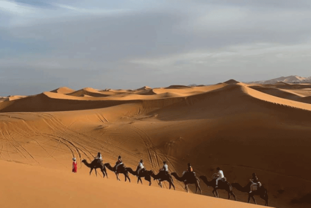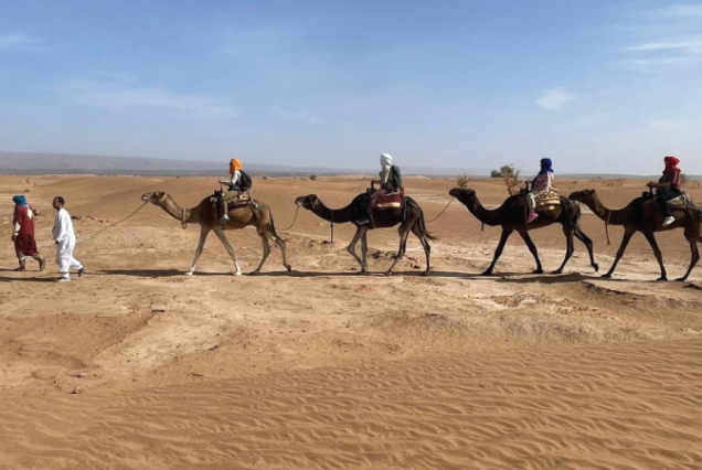 Embark on a unique 5-day adventure through the vast dunes of the Moroccan Sahara, guided by professional nomadic guides. Your luggage is carried by a camel caravan, allowing you to fully immerse in the tranquility of the expansive desert.
